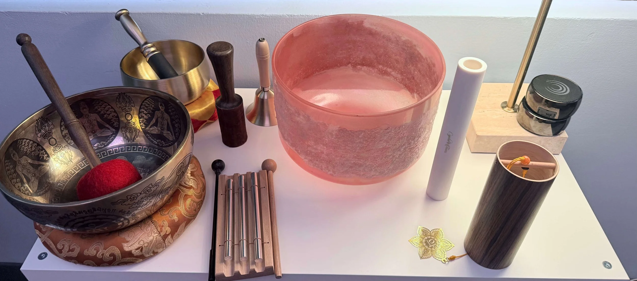 Sound healing is a therapeutic practice that uses intentional vibration and frequency to support nervous system regulation and emotional balance. During a session, instruments such as singing bowls are used to create healing sound that helps guide the body out of stress and into a more regulated state.